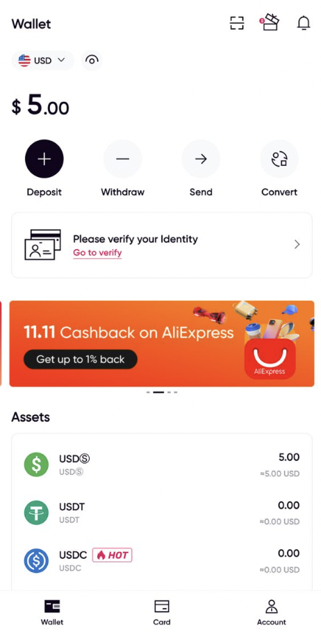 - Selepas akaun anda disahkan, anda boleh memohon kad maya atau fizikal melalui aplikasi.